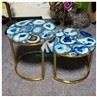 The Semiprecious Agate Nesting Tables can brighten up any space. The agate stone table top has a peculiar relationship with light; even with a small amount of natural light, Agate Nesting Tables accent pieces may illuminate the room. The brushed gold stainless steel frame gave it a sophisticated appearance! The bright agate tops accentuated by the velvety nickel base of these space-saving Agate Nested Round Tables will bring your decor to life. The Agate Top Nesting Table, handcrafted in China, is a modern accent or the ideal location to rest a book or drink next to your favorite chair.