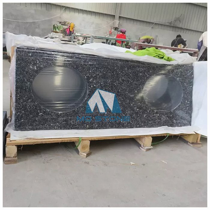 Blue Pearl Granite Vanity Top 3/4" in thickness with double under-mount sink holes for large bathroom projects, like hotels, and shopping malls. All of our Blue Pearl Granite Vanity Top is Factory cut, polished, and sealed. Double standard oval under-mount sink holes precut for further sink installations. A matching 4"H backsplash is also included. Blue Pearl Granite Bathroom Countertop can last a lifetime with proper care but it needs a little help from you to maintain its beauty.