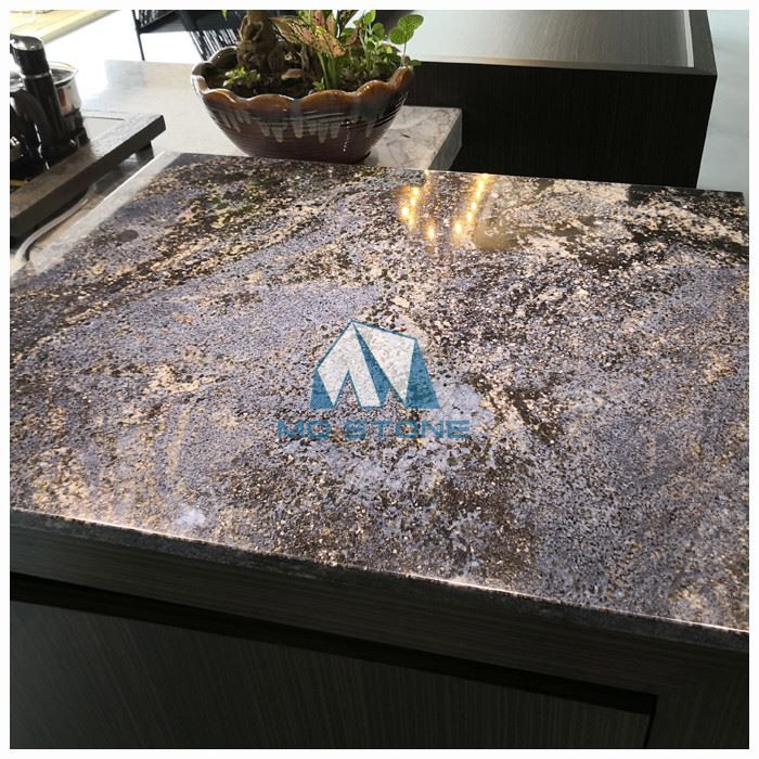 Luxury Brass Blue Granite Kitchen Surface Slabs For Island tops and Worktops