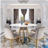 Every day we have dinner with our family and friends, choosing a beautiful and comfortable dining table is important. The popular shape for the dining table is round, rectangle, and oval. Today we introduce a Calacatta White Marble Dining Table, it is very nice and matches the furniture in your home. The tabletop material is Italy Calacatta marble stone, the base is solid metal crafted from a solid matte black powder or golden powder-coated metal base.