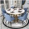 Masonry Quality Stone natural marble round dining tables have diverse stunning geometrical metal bases. Available in a variety of amazing combinations, select the one that suits your dining room.