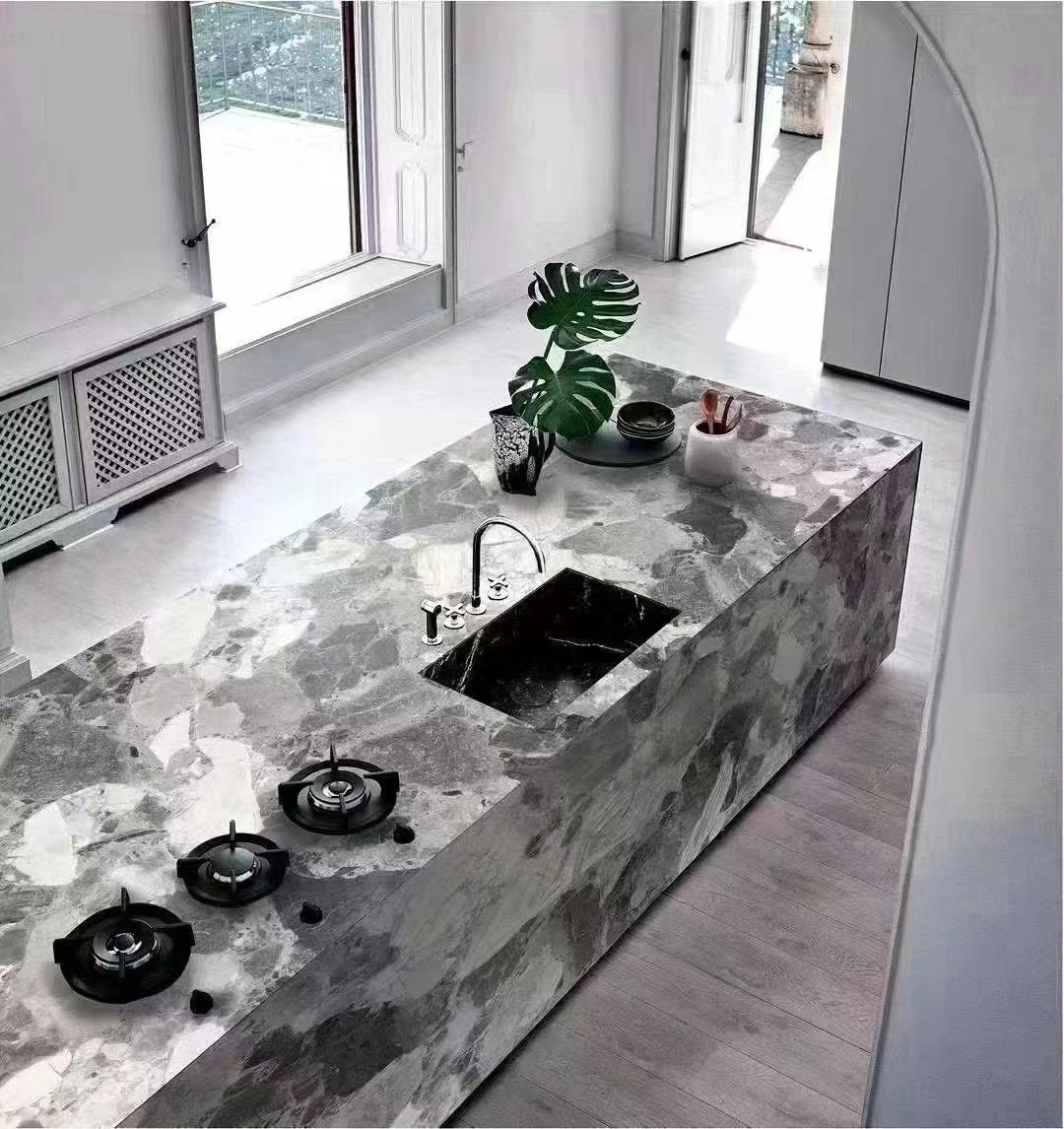 Today our company recommends a niche that also can penetrate the hearts of natural stone-Ceppo Di Gre Marble. Conglomerate with various gray tones, shards, and light blue reflections. Having seen the delicate natural stone, this terrazzo-textured material will make a difference.