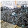 Labradorite Blue Granite Slabs is a dark grey/green anorthosite with iridescent blue areas. This blue granite stone may be nominated as granite on a global scale, however, in the European Standard's application region, this Labradorite granite must be designated as an anorthosite. Because the veining and color of Labradorite Blue granite vary greatly and a tiny sample may not be indicative of the entire granite slab, swatch samples must be approved for major projects to confirm that the blocks are all pulled from the same quarry face for matching purposes. A clear epoxy resin filler may be used during the polishing process to cover any micro-fissures or microscopic pitting, however, this does not affect the stone's integrity and only produces an even smoother surface finish. Labradorite Granite is frost resistant and has a consistent polish, making it appropriate for both indoor and exterior use.