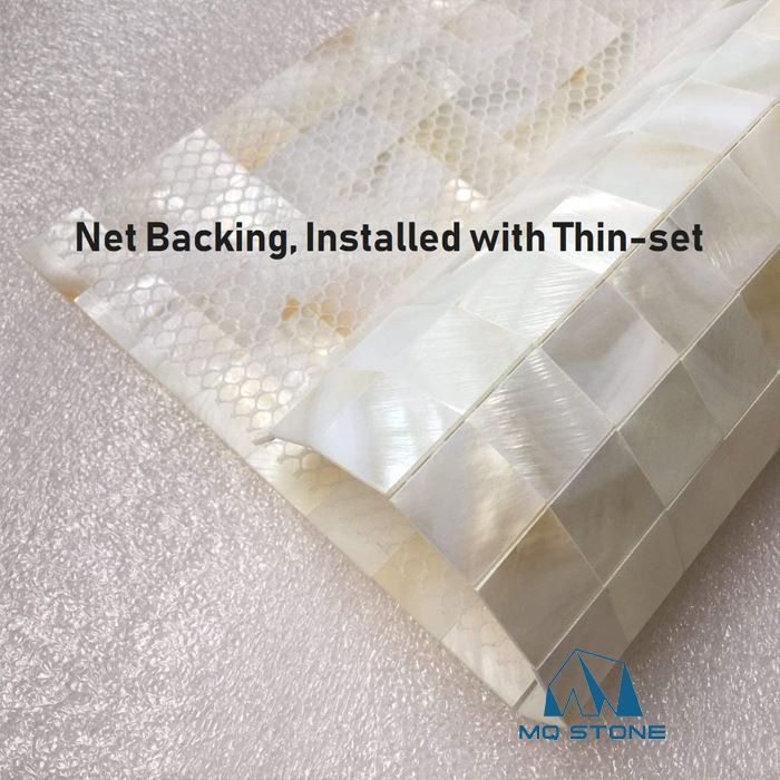 Please note that white pearl mosaic tiles are naturally handcrafted products, the shade and texture may vary. Cut freely with scissors along the chip surface, any cut on the surface of the mother of pearl tile, preferably with an angle grinder, as the mother of pearl shell mosaic tile, is as hard as marble tile.