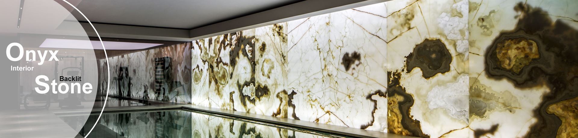 Application: Onxy Slabs For Wall Facade, Dinner Table, Kitchen and Bathroom Countertops For Estate Projects.