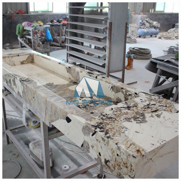 While now, we have a special order of Patagonia Quartzite Vanity Tops For a Luxury Hotel Looby Washrooms, and other Functional Area projects, this Patagonia quartzite Bathroom vanity top is cut from a whole piece block to make a one-piece vanity top. This design with extra-large rectangular sink, large enough space on both sides of the Quartzite Stone vanity top for other toiletries such as hand soap, paper towels, flowers, etc.