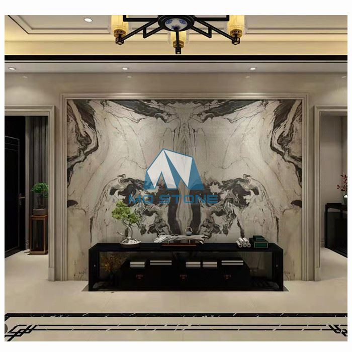 San Simone Quartzite is ideal for decorative designs. The black veins sat on top of the creamy white background would look sleek, modern, and elegant wherever you placed San Simone Off White Quartzite in your interior projects. While San Simone Quartzite Stone is very similar to Chinese panda marble, these two natural stones just have 2 colors, white or creamy based, with thicker black veins crosse the whole slabs.