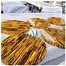 These exquisite Tiger Eye Table Tops have been crafted from semi-precious stone Tiger’s Eye. The incredible, unique, elegant, and exquisite Tiger Eye Table Tops. Tiger eye gemstone has been meticulously cut into small pieces, then pieced together to create an intricate pattern. The MQ STONE's Tiger Eye Gemstone table comes in round, rectangular or square, and can be ordered with brass or walnut legs.