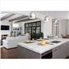 Natural quartzite stone is known to be more durable than granite, but this is just one of many differences between the two. Warm wooden floors complement an all-white kitchen and highlight the white quartzite Macaubas countertop and natural granite countertop. The white modern wooden cabinets are pleasantly combined with the White Macasub as a quartz worktop. Polished Macaubas Quartzite is available for almost any application in homes and businesses, including kitchens, bathrooms, dining rooms, and even office space.